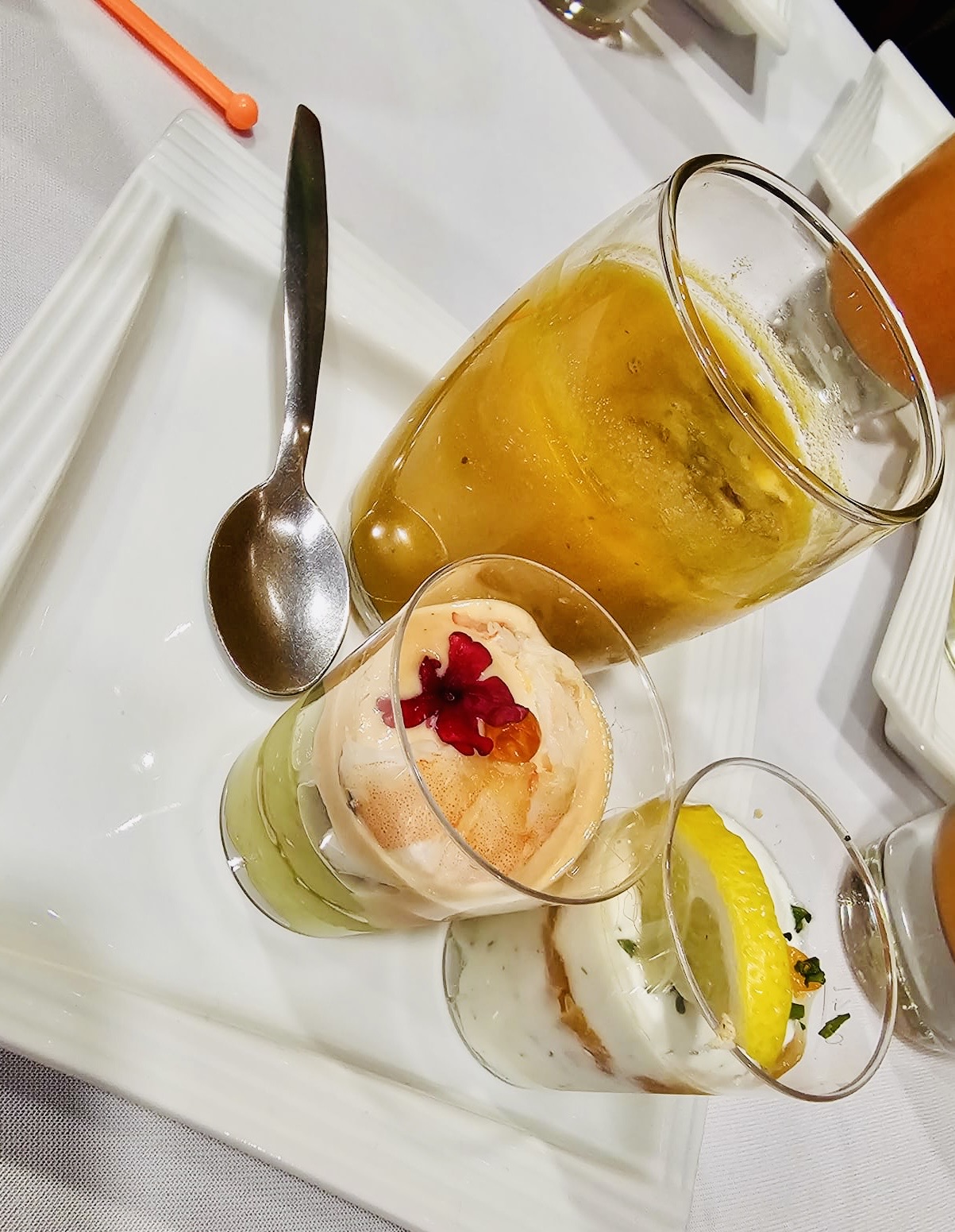 Côté BOISSONS Apéritives – Un Cocktail Maison fabriqué avec le cognac Gabrielsen + Cocktail Non Alcoolisé agrémenté de fruits et d’eau pétillante AU CHOIX !